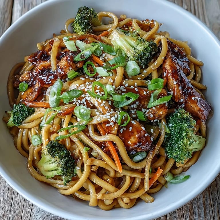 Save The homemade teriyaki sauce is the star of this bowl, combining aromatic garlic and fresh ginger with a touch of sesame oil. By simmering these ingredients with a cornstarch slurry, you create a thick, velvety glaze that coats every strand of noodle and every piece of vegetable perfectly.