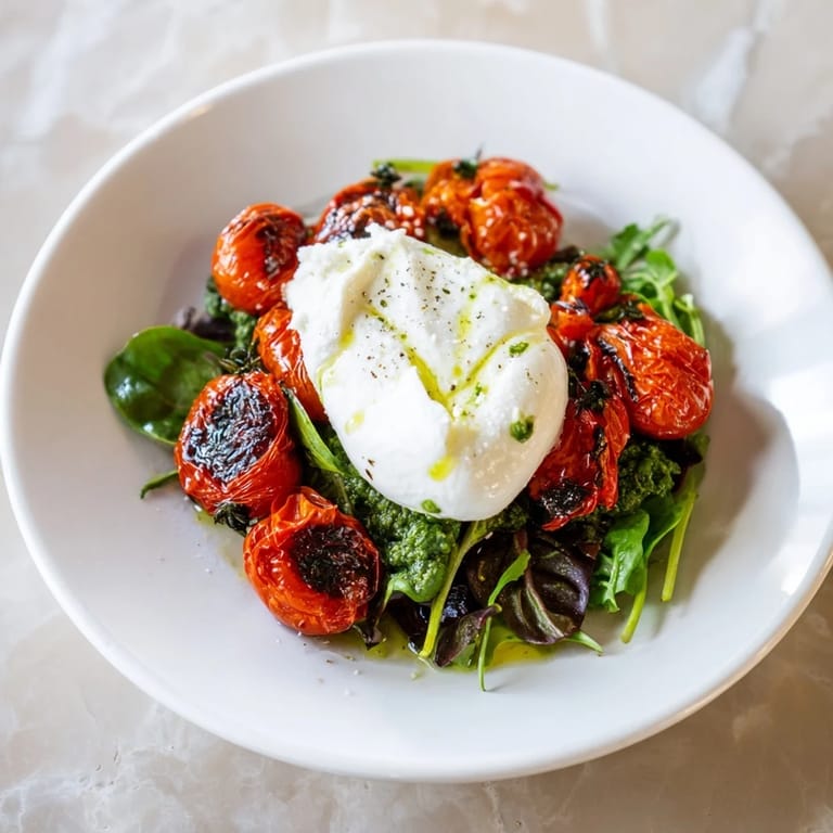 - Burrata: The creamy interior is what ties the warm tomatoes and sharp greens together, though fresh mozzarella works in a pinch