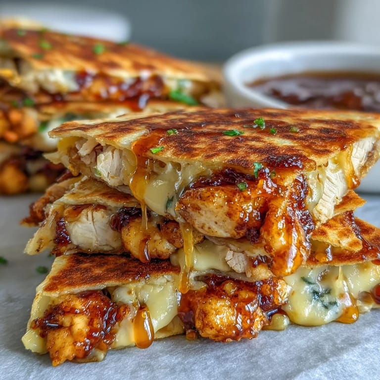 Save The smell of honey hitting a hot skillet still takes me back to my first apartment kitchen, where I discovered that sweet heat could transform ordinary chicken into something that made my roommate pause mid-bite. These quesadillas started as a late night experiment with leftover takeout honey packets and a dusty bottle of hot sauce, but they've evolved into the most requested dinner whenever friends gather around my island. Something about that combination of melty cheese, tender chicken, and cream sauce just works.