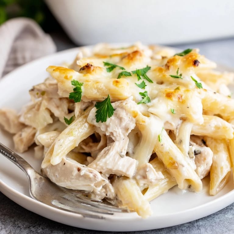 Save My kitchen smelled like butter and garlic, and I was staring at leftover chicken wondering what to do with it on a cold Tuesday. I had penne in the pantry, cream in the fridge, and zero energy for anything complicated. That's when this casserole came together, almost by accident, and it turned into the kind of dish my family asks for by name now. It's warm, rich, and exactly what you want when comfort matters more than effort.