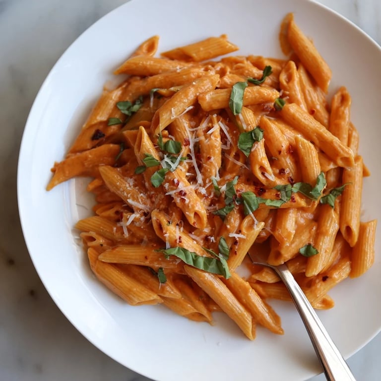 Save The first time I made this roasted red pepper sauce, I stood over the blender absolutely captivated by the color. It is this impossible vibrant orange-red that makes the whole kitchen feel warmer somehow. I had originally planned to make a basic tomato sauce but found a forgotten jar of roasted peppers in the back of my pantry. Now this pasta has become my go-to when I want something that looks impressive but actually comes together in the time it takes to boil water.