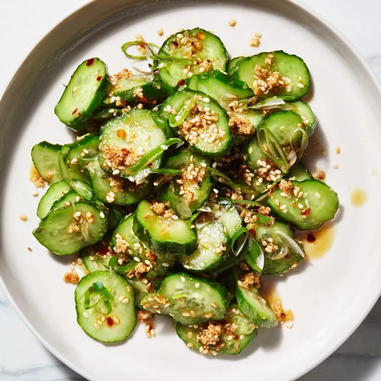 Smashing the cucumbers instead of slicing them is the move that changes everything. The crack and give of the knife or rolling pin isn't just technique—it's texture. Those jagged, split pieces expose more surface area to the dressing, creating little pockets that catch the sesame oil and allow the umami to seep in deeper. It's the difference between a salad that tastes good and one that tastes intentional.