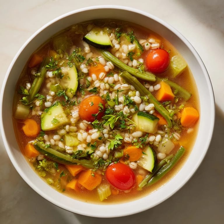 Save A comforting, nourishing soup featuring whole grains and fresh vegetables—perfect for a light lunch or cozy meal any day.
