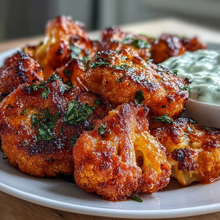 For a classic wing-night flair, serve these buffalo cauliflower florets alongside fresh celery and carrot sticks. They are best served hot and fresh out of the oven to maintain their texture.