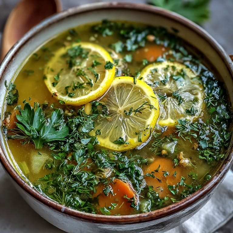 Save A vibrant, refreshing soup featuring bright citrus notes and a medley of fresh herbs, perfect for a light appetizer or a soothing main course. This Mediterranean-inspired dish brings together the earthiness of root vegetables with the zing of fresh lemon and aromatic herbs.
