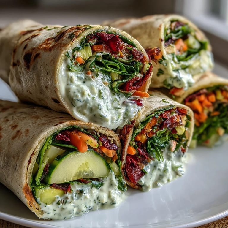 Save There's something irresistibly fresh about biting into a crisp veggie wrap filled with colorful vegetables and tangy lemon aioli. These Picnic Veggie Wraps are a celebration of wholesome ingredients and bright flavors, perfect for a sunny afternoon outdoors or a quick, nutritious lunch at home. Each tortilla is loaded with crunchy vegetables like shredded carrots, cucumber, and red bell pepper, layered with creamy avocado and a zesty homemade lemon aioli that brings everything together. Whether you're packing them for a picnic basket or enjoying them fresh in your kitchen, these wraps are as satisfying as they are beautiful.