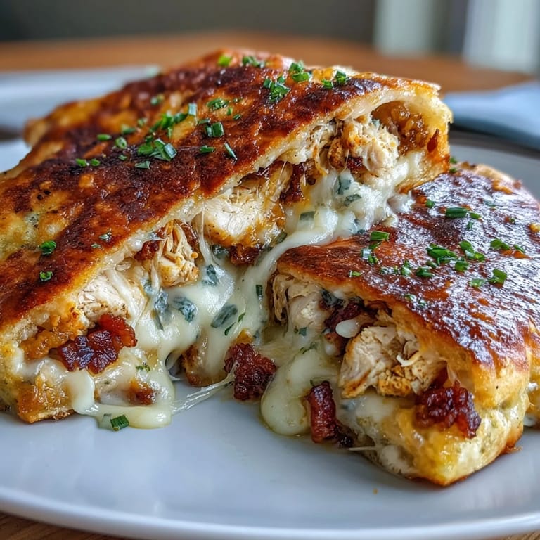 Save My friend texted me a photo of some stuffed naan from a food truck, and I couldn't stop thinking about it all week. The image showed this golden, crispy pocket practically bursting with shredded chicken and melted cheese, and I knew I had to recreate it at home. That evening, I raided my fridge, found some leftover rotisserie chicken, and started experimenting with flavors until I landed on this ranch and bacon combination. The first batch came out of the skillet sizzling and perfect, and honestly, it's been on heavy rotation ever since. Now whenever I make it, the smell alone brings people into the kitchen asking what's cooking.