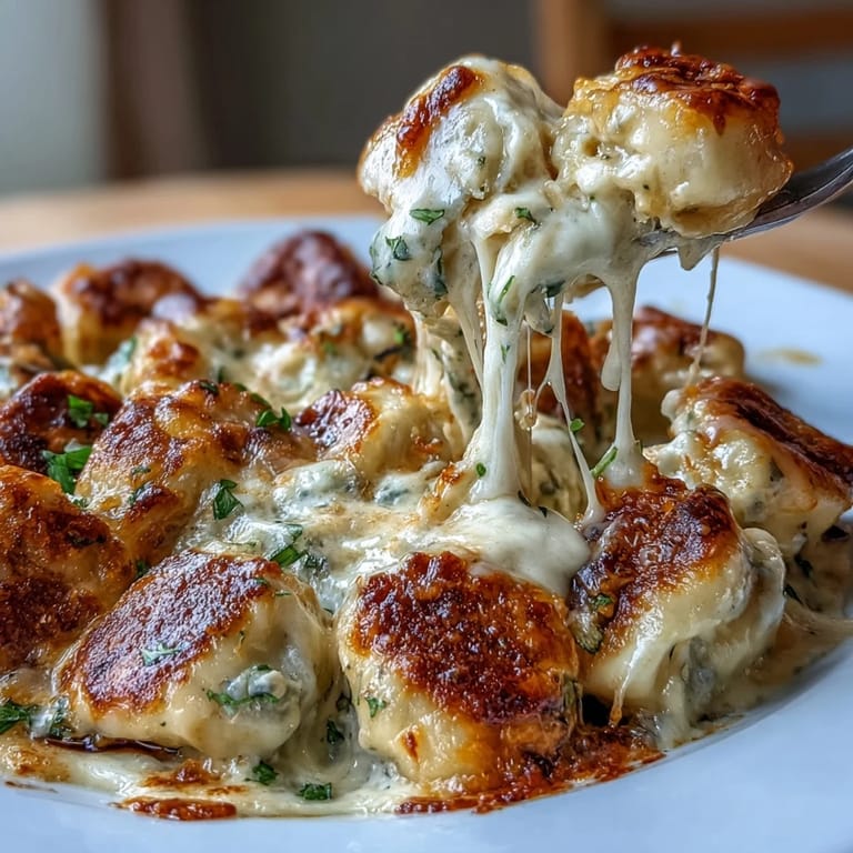 The real transformation happens when that cream-based sauce meets the dumplings and cheese in the oven. The dumplings don't fully cook in boiling water first; instead, they steam and poach in the creamy mixture, absorbing flavors while staying tender. By the time the cheese gets bubbly on top, the whole dish has turned into something that feels way more sophisticated than its assembly-line ingredients suggest, and that's where the magic lives.