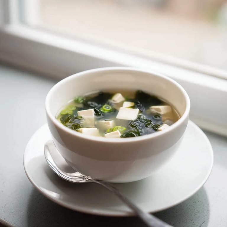 Save The steam rising from my first bowl of wakame soup at a tiny Tokyo ramen shop changed how I thought about broth entirely. The chef had slid it across the counter as a starter, this impossibly clear golden liquid with floating clouds of seaweed and tender tofu cubes. I watched him prepare it through the open kitchen, noting how gently he stirred the miso, never letting the broth reach a rolling boil. That quiet attention to detail made something so simple taste extraordinary.